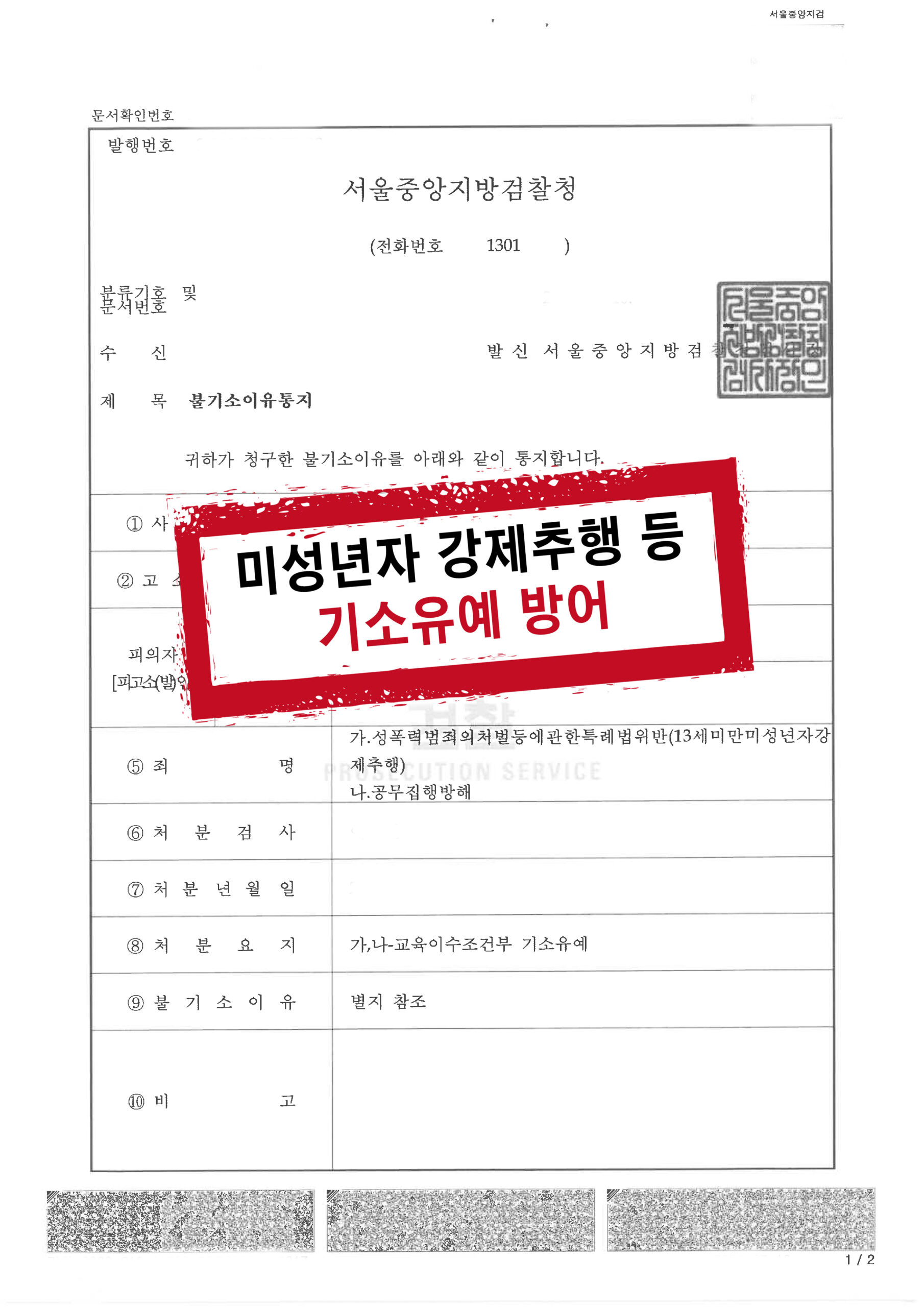 성폭법위반(13세미만미성년자추행) 등 기소유예