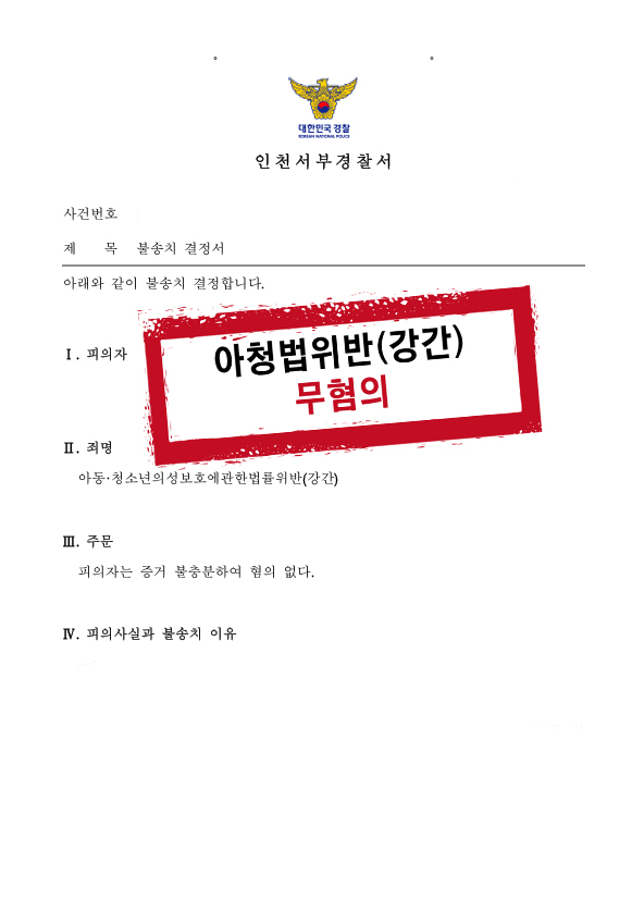 불송치(혐의없음)