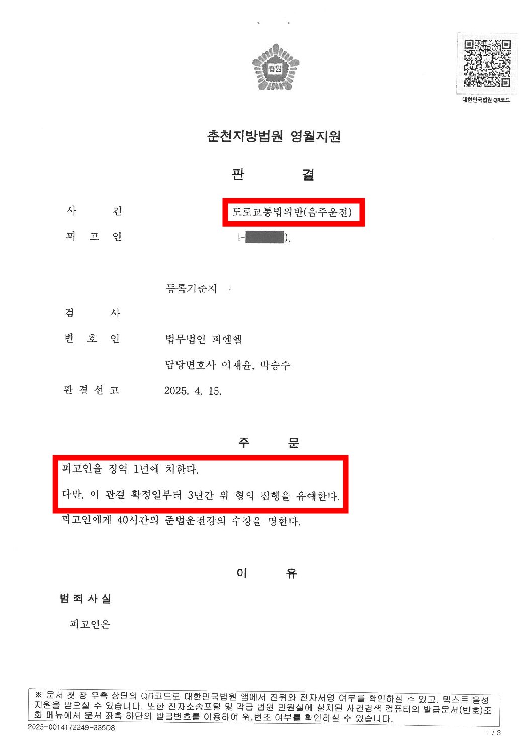 음주운전 항소심(1심 징역 2년)