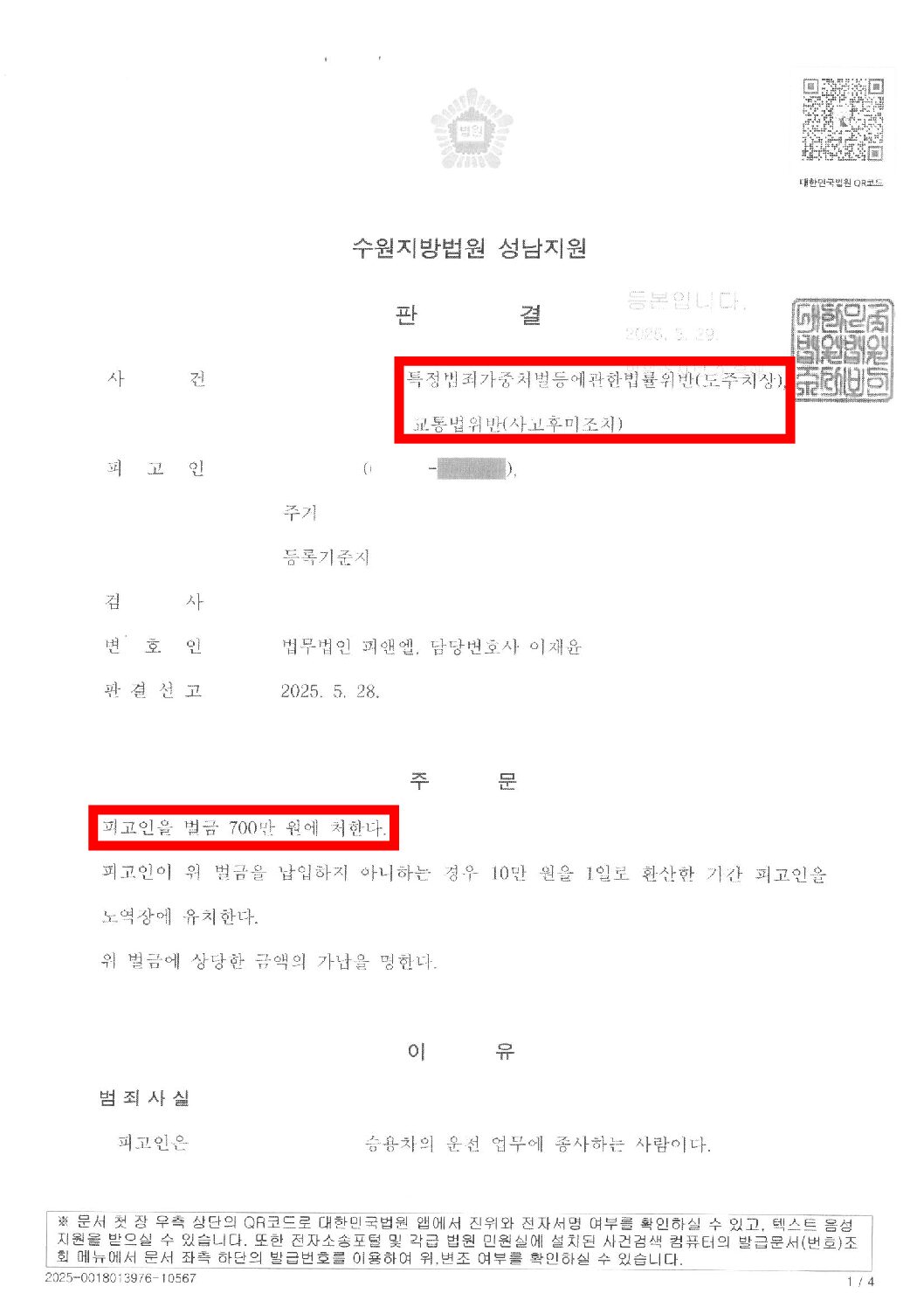 벌금 700만